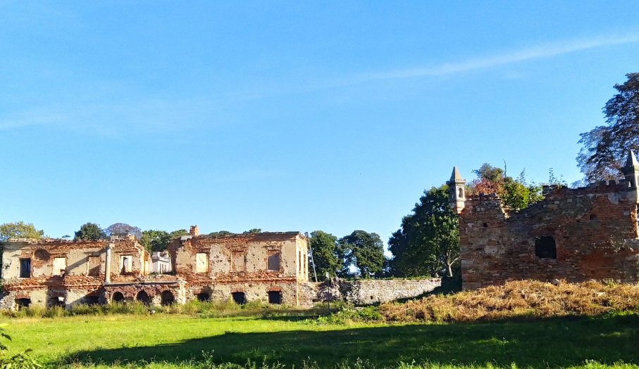 Neorenesansowy pałac we Włostowie - zbudowany dla Stanisława Karskiego w latach 1854-60 według projektu Henryka Marconiego, przebudowany na przełomie XIX i XX w. przez jego syna Władysława - otoczony prakiem. Do ruin pałacu prowadzą dwie drogi: pierwszej strzegą dwa kamienne lwy, druga, od strony parku, biegnie przez tzw. bramę "diabelską". Pałac w okresie swej świetności liczył 30 pomieszczeń: prócz sypialni, pokojów dziecinnych i gościnnych była także kaplica, trzy kolorowe salony (biały, czerwony i zielony), sala balowa, bilardowa oraz bogata biblioteka składajaca się z ponad 9 tys. woluminów. Pałac wyposażony był w : światło elektryczne, centralne ogrzewanie, cztery łazienki z bieżącą ciepłą i zimną wodą oraz linię telefoniczną.