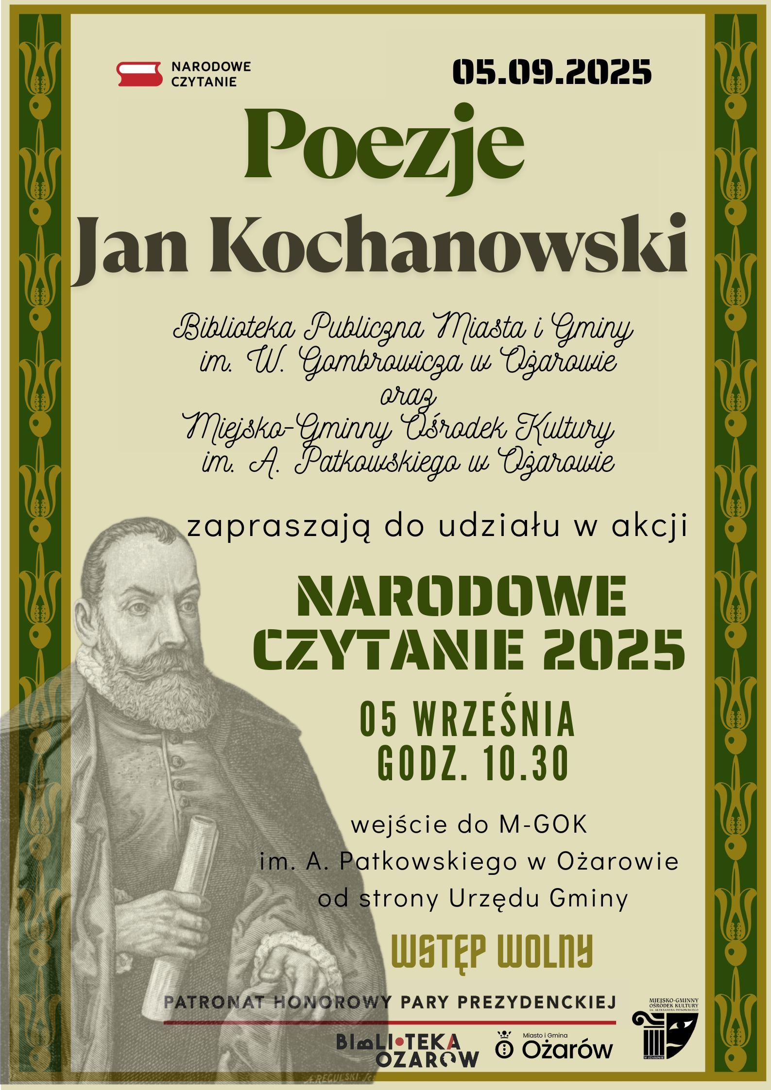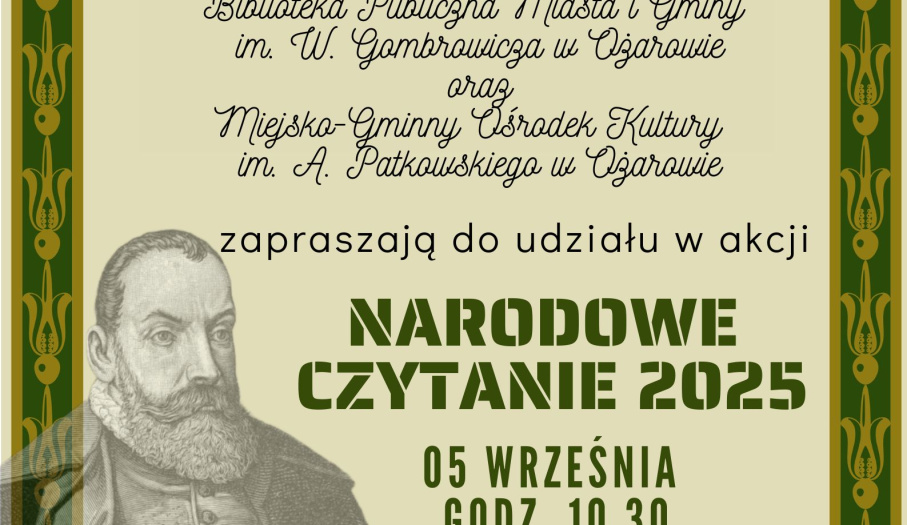 Narodowe Czytanie 2025 - Zaproszenie Biblioteka Ożarów