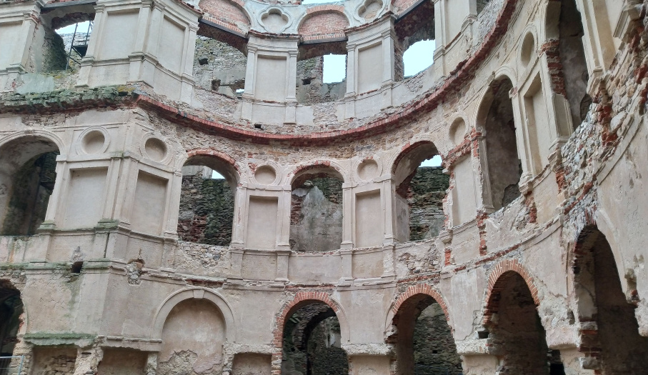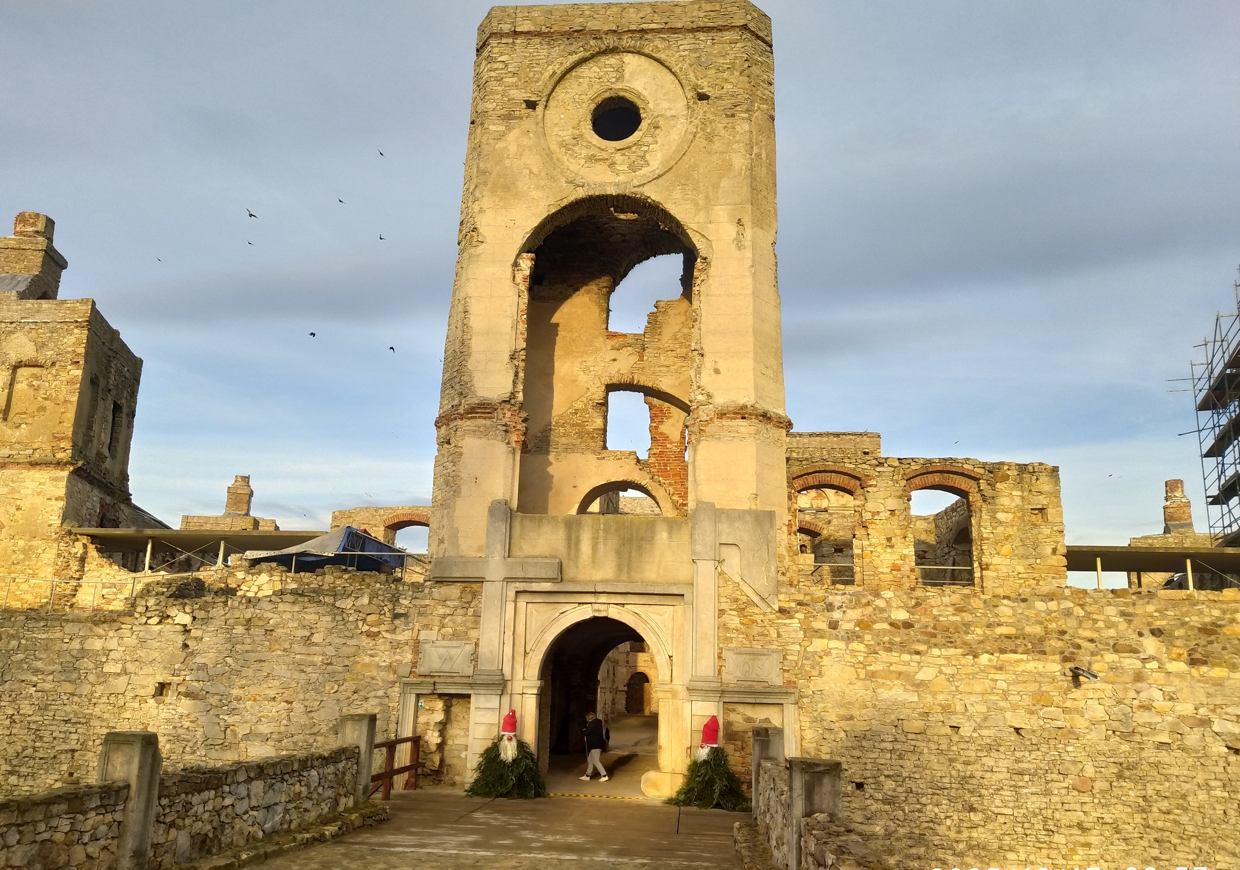 Ten bajecznie bogaty magnat postanowił ufundować siedzibę, która przyćmiłaby swym przepychem wszystkie inne. Obiekt w nowym typie palazzo in fortezza spełniał wymogi obronności i elegancji. Niezwykły pałac otoczony był murami z czterema bastionami, dającymi nowe możliwości obrony poprzez ustawienie dział poza linią murów. Sam pałac budowany był jako swoisty kalendarz. Miał ponoć tyle baszt ile kwartałów, sal dużych – ile miesięcy, pokoi – ile tygodni i okien – ile dni w roku. Strop w sali jadalnej był podobno szklany, a biesiadnicy podczas posiłków mieli okazję oglądać nad sobą pływające egzotyczne ryby. W stajniach umieszczonych w lewej części dziedzińca ok. 2/3 niżej jego poziomu, konie jedzące z marmurowych żłobów mogły przeglądać się w umieszczonych nad nimi kryształowych lustrach. W istocie lustra nie służyły wcale samym koniom, ale rozświetlaniu pomieszczenia poprzez odbijanie promieni słonecznych padających przez umieszczone wysoko okna; w opowieści tej pozostał jednak żywy mit magnackich fanaberii. Brama wjazdowa jest oflankowana dwoma wielkimi płaskorzeźbami krzyża i topora. Topór to godło herbowe rodu Ossolińskich, ma krzyż interpretowany jest jako kontrreformacyjny symbol przynależności do kościoła katolickiego i oporu „nowinkom religijnym”. Współczesna nazwa pałacu – „Krzyżtopór” – wywodzona jest właśnie od tych symboli, pierwotnie jednak budowla nazywana była „Krzysztopór” i być może pierwszy jej człon zawiera imię fundatora. Nie cieszył się on zbyt długo swą siedzibą, zmarł 24 II 1645 r. w Krakowie, tam też pochowano go w podziemiach kościoła karmelitów bosych, odzianego w zgrzebny habit franciszkański. Spadkobiercą jego majątku został jedyny syn, Krzysztof Baldwin. Rodowe fatum jednak znów dało o sobie znać: Krzysztof zginął bezpotomnie w 1649 r. od tatarskiej strzały podczas bitwy pod Zborowem. Pałac przeszedł w ręce Kalinowskich, później Wiśniowieckich, Morsztynów, Paców, Sołtysów i Orsettich. W 1655 zamek zajęli, a później obrabowali Szwedzi. Do ostatecznego dzieła zniszczenia przyczynili się stacjonujący w nim konfederaci barscy. W 1787 r. król Stanisław August Poniatowski zatrzymał się w zamku „dla oglądania zwalisk sławnego niegdyś pałacu w Ujeździe”. Dziś w tym niezwykły miejscu w ostatni weekend maja odbywa się Turniej Rycerski o Szablę Krzysztofa Baldwina Ossolińskiego.
